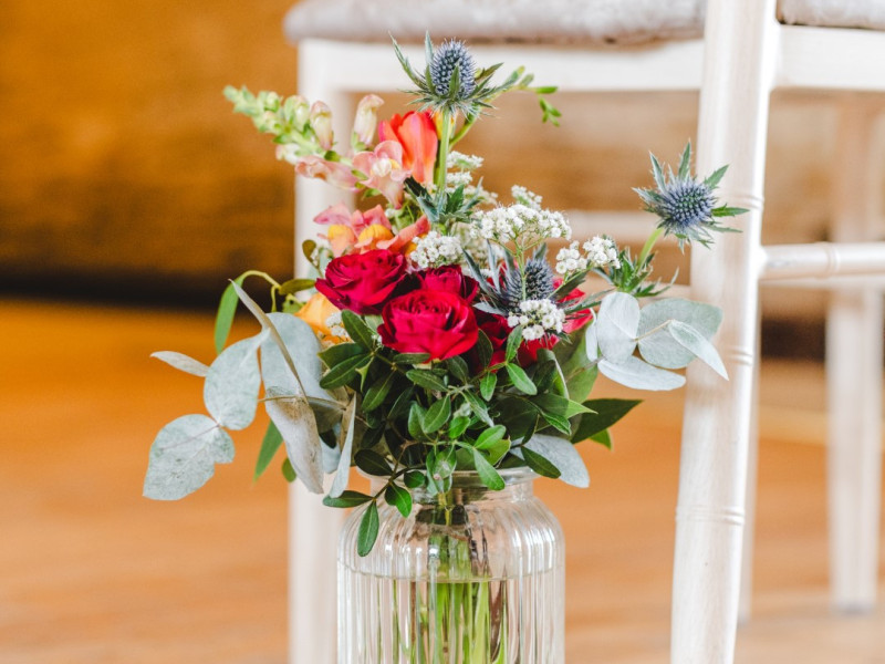 Tanya provided the flowers, bouquets etc for the day as well as decorating the venue for us - she did a fantastic job with both! The flower displays were beautiful and exactly what we had envisaged for the day. She got the colour scheme spot on and the choice of flowers was beautiful. She was very professional as well as very kind and supportive on the actual day and we did not even have to think about the flowers / decorations - it was all done for us! The guests commented on how beautiful the flowers were and the flowers / decorations went so well in the Barn. Tanya was also very good at looking at how we could use some of the aisle decorations later on in the day so that they would be used again and the table decorations were just what we had in mind. A lot of the flower decorations were also done in a way that the guests and ourselves could take them home at the end of the day, so that we could enjoy the beautiful flowers for a bit longer.
